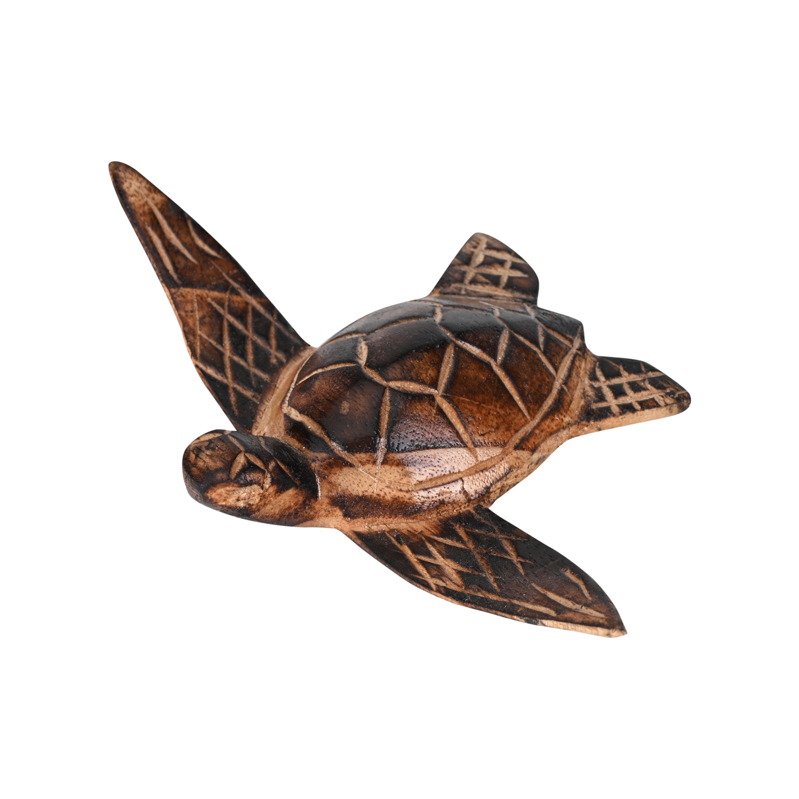 A Unique Masterpiece: The Brown Turtle is a hand-carved wooden sculpture that captures the serene beauty of this ancient sea creature. With its outstretched flippers and gently curved shell, it embodies the grace and calm of ocean life, brought to life by artisans who carry forward generations of carving traditions.